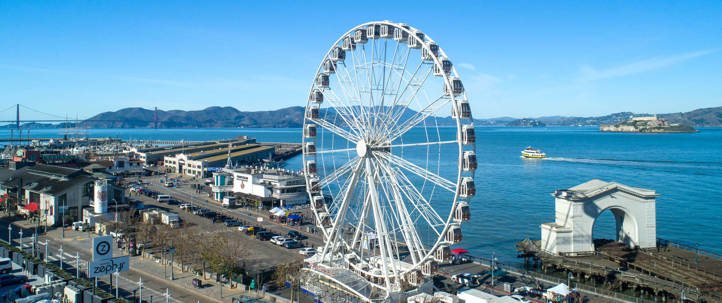 From the top of our wheel, guests can take in panoramic views of Pier 39, Alcatraz Island, the Golden Gate Bridge, Coit Tower, the Transamerica Pyramid, and the San Francisco Bay.